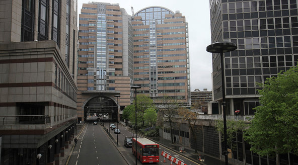 JPMorgan Chase, center, in London, where the losing trades were initiated. The Federal Reserve is examining the scope of the accelerating losses.