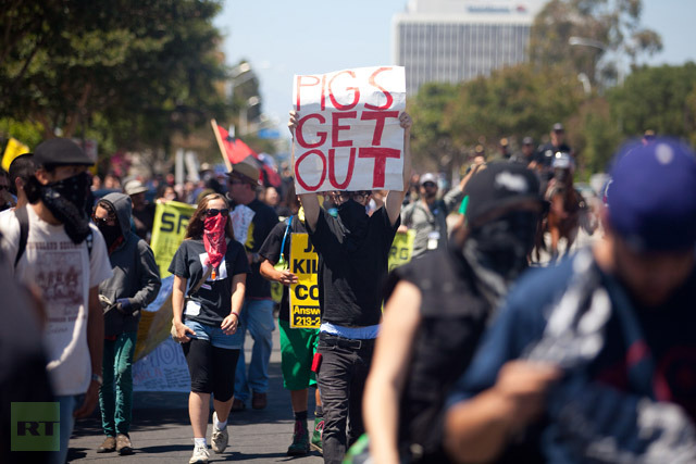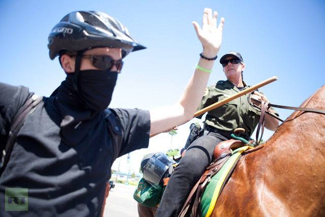 But many of the demonstrators came from outside Anaheim and were part of the Occupy movement, reports local media.